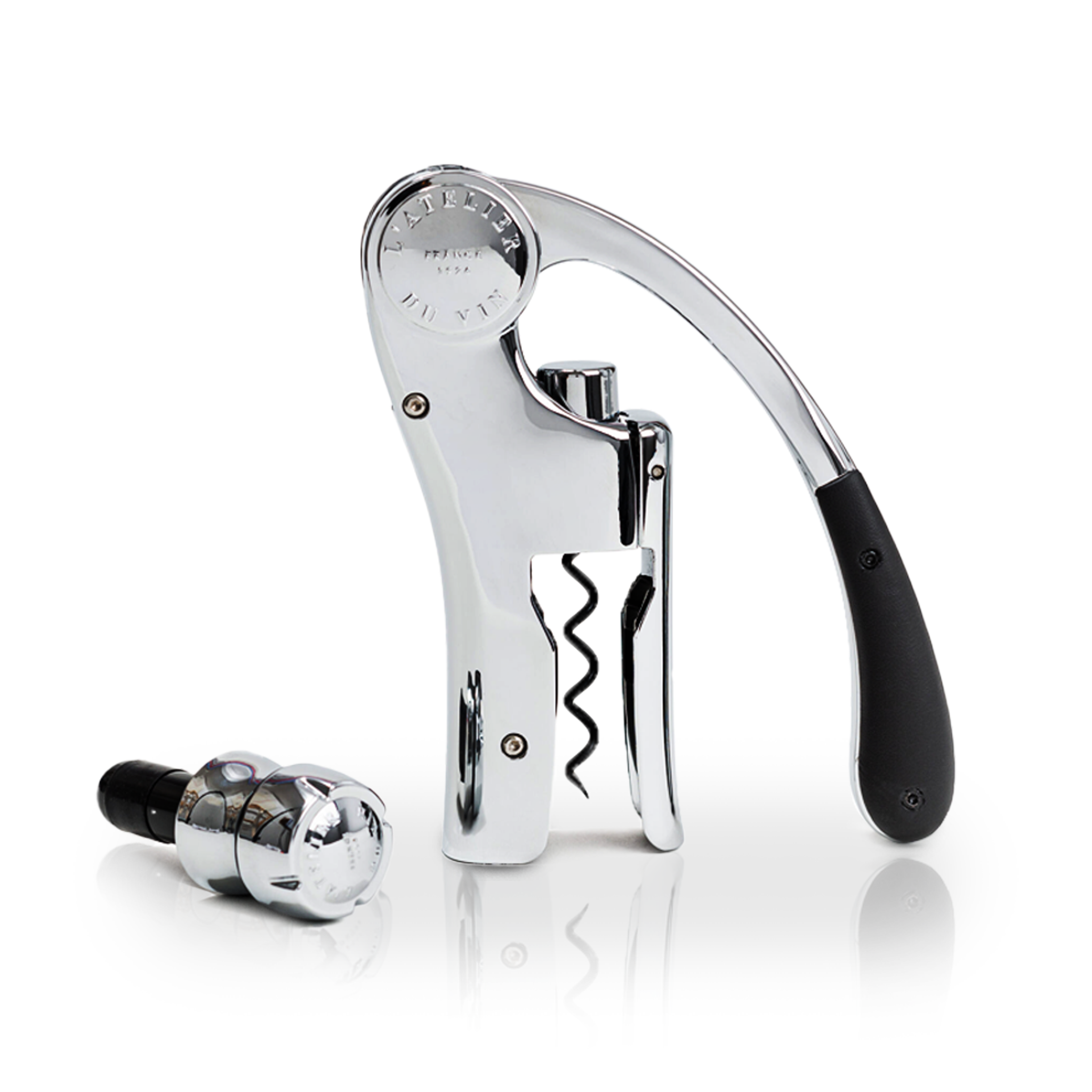 The Up & Down set exemplifies L’Atelier du Vin’s commitment to quality and craftsmanship. This meticulously curated duo combines the sophistication of the Oeno Motion Leather&Silver® corkscrew with the innovative Bubble Cork Silver® preservation stopper, creating an essential collection for mastering every aspect of wine tasting. The Oeno Motion Leather&Silver® corkscrew features a robust mechanism for seamless uncorking, complete with a leather handle, removable spiral guard, and an integrated cap cutter, ensuring durability and ease of use. The set also includes a vial of special oil to maintain the corkscrew’s performance.