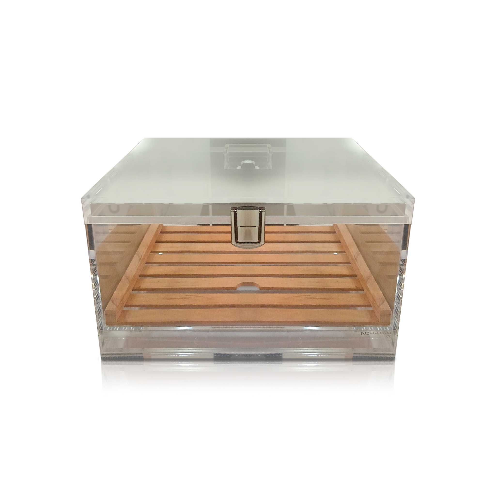 The SKRLN Acrylic Tray Humidor combines sleek acrylic construction with a natural cedar wood tray, offering an elegant and functional solution for cigar storage.