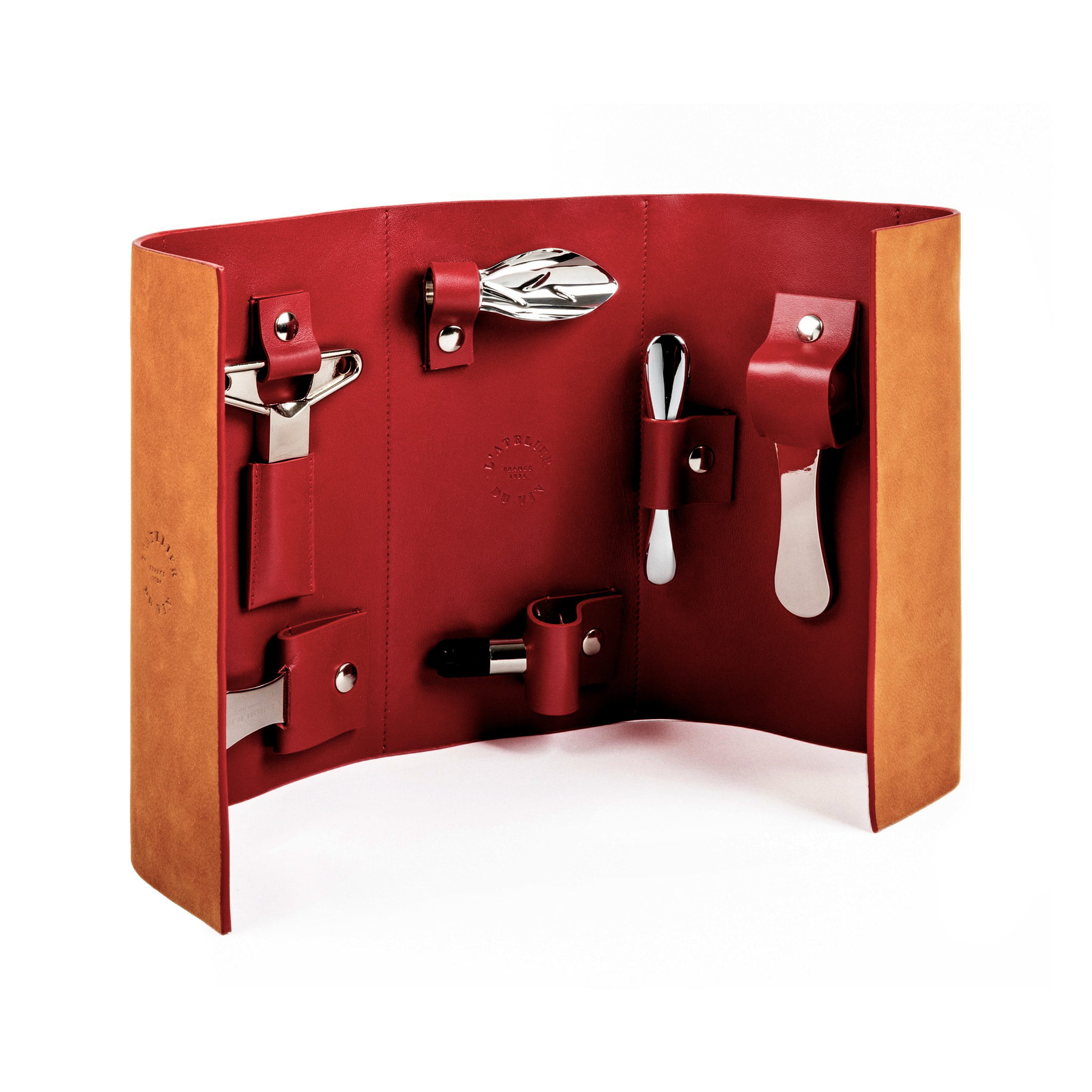 Each case is made from natural fawn leather that ages beautifully over time, with a durable and colorful interior. Every toolkit is unique—just like its owner.